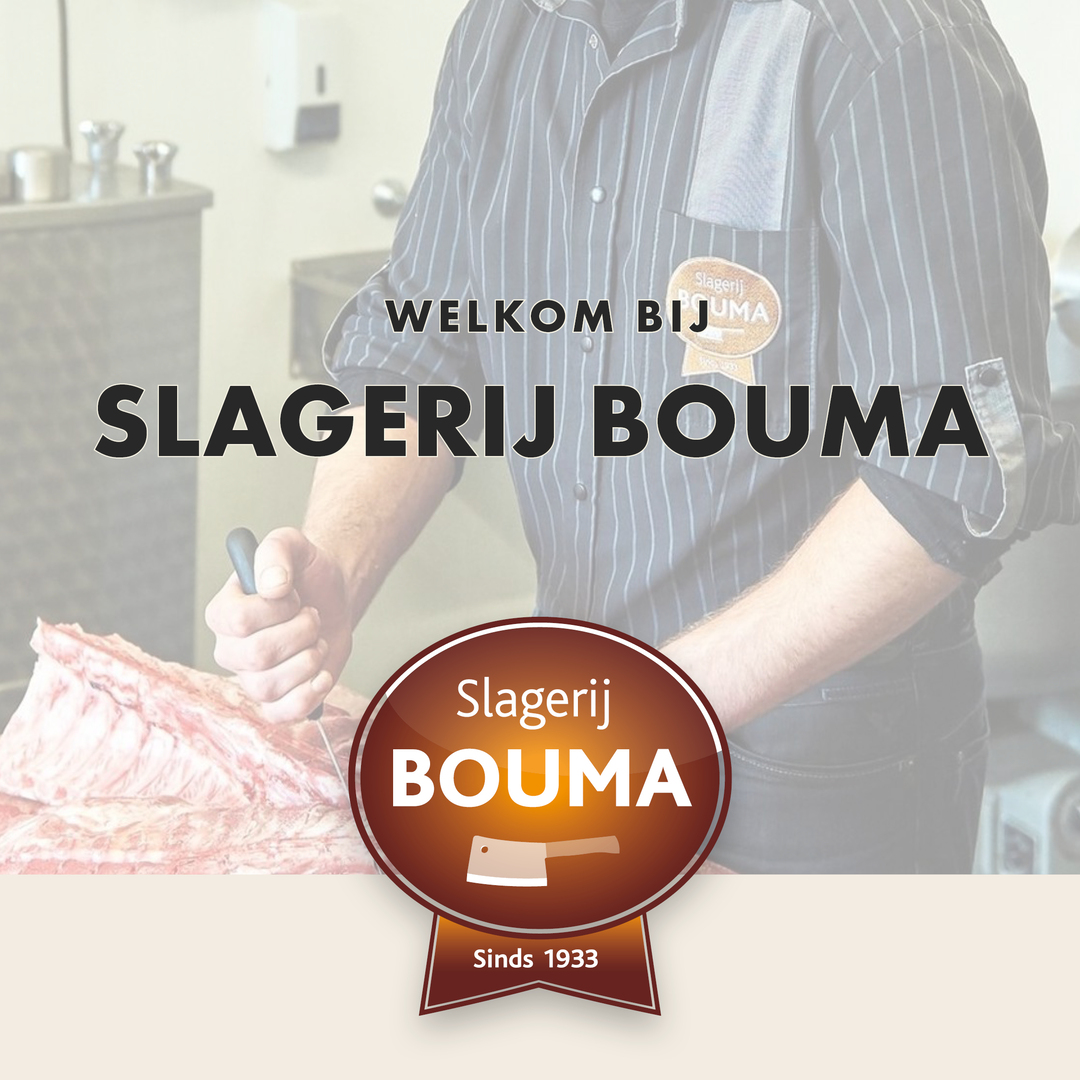 In 1933 begon pake Willem Bouma met zijn eigen slagerij. In de jaren ’60 namen zijn zonen Broer en Jouke Bouma de zaak over en bouwden het bedrijf verder uit. In 2008 droegen zij het stokje over aan de volgende generatie: neven Willem Bouma, die met dezelfde toewijding en passie het ambacht voortzetten